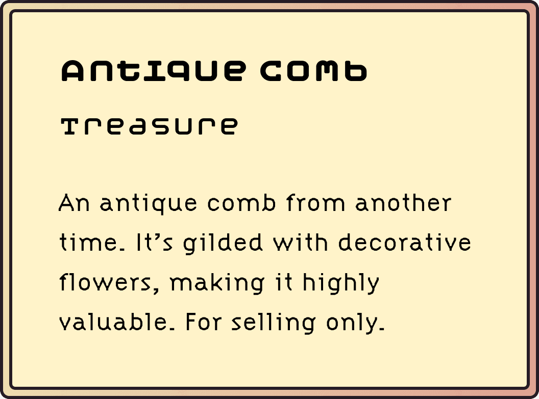 The HUD's primary function is to show the player the essential info needed to complete the current level, while also keeping the display area blocked by the interface to a minimum for the player to easily spot incoming enemies or interactable items & puzzles. I created two versions of the HUD: exploration mode and combat mode, as well as UI elements for picking up items in the game environment.